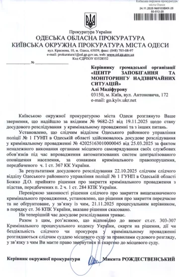Параллельно органы полиции (производство №42025163010000045 от 25.03.2025 года) предоставляют правовую оценку действиям должностных лиц, ответственных за это направление. Вопрос касается возможного ненадлежащего исполнения служебных обязанностей, что могло привести к неэффективному использованию бюджетных средств.